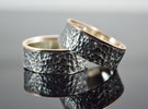 Ansprechende handgefertigte Partnerringe oder Eheringe aus 925er Silber und 333er Gold. Die Ringe sind jeweils so gestaltet, dass zum einen ein polierter schmaler runder Goldring zu erkennen ist und direkt daneben ein strukturierter und außen teilmattierter Silberring mit polierter Innenseite. Tatsächlich sind beide Teile miteinander verbunden, so wie man eine Verbindung mit dem Partner eingeht. Geschmackvoll und modern!